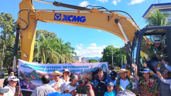 El presidente Lucho Arce Catacora a través del Ministerio de Desarrollo Rural y Tierras y de la directora general ejecutiva del Fondo de Desarrollo Indígena Lic. Delicia Rossio López Tolaba entregó este viernes maquinaria para el mejoramiento a la producción piscícola en el municipio de Ixiamas.