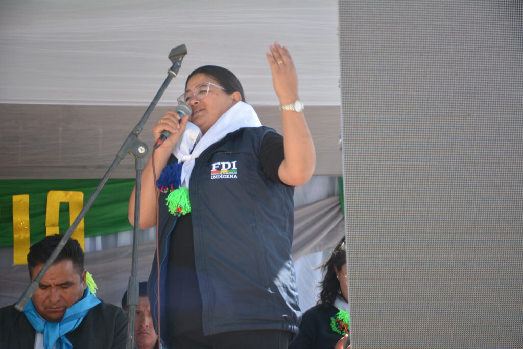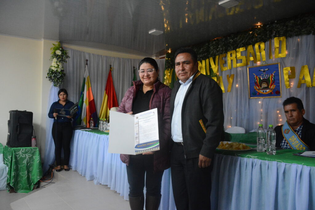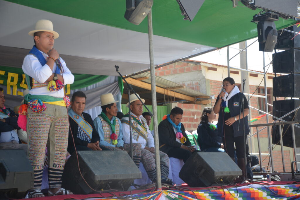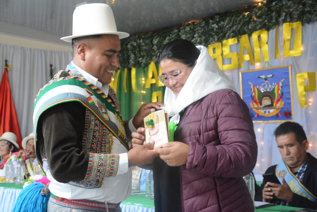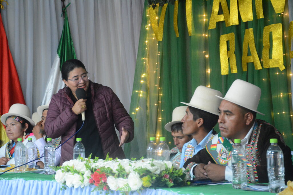 De esta manera garantizamos la soberanía alimentaria en el GAIOC optimizando el aprovechamiento de los recursos hídricos disponibles, mediante la construcción de atajados que permita el almacenamiento, dotación oportuna y suficiente de agua a los cultivos. En el acto Principal la Directora fue reconocida por su labor en bien de los Gaioc’s del País y además, la autoridad máxima del territorio destacó su dedicación en el trabajo que realiza, en ese sentido también agradeció a la Directora por este regalo para la Gaioc. La Directora López por su parte agradeció por la invitación y recordó al territorio de Raqaypampa a trabajar en unidad para mostrar mejores resultados y que el proyecto llegue a ser sostenible con el tiempo.