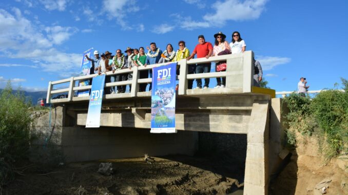 FDI / Colcapirhua (13. abril. 2025). – En el marco de las políticas del sector agrícola liderado por el hermano presidente del Estado Plurinacional de Bolivia Luis Alberto Arce Catacora, este fin de semana la directora general ejecutiva del Fondo de Desarrollo Indígena Lic. Delicia Rossio López Tolaba entregó dos puentes vehiculares en el municipio de Colcapirhua en el departamento de Cochabamba.