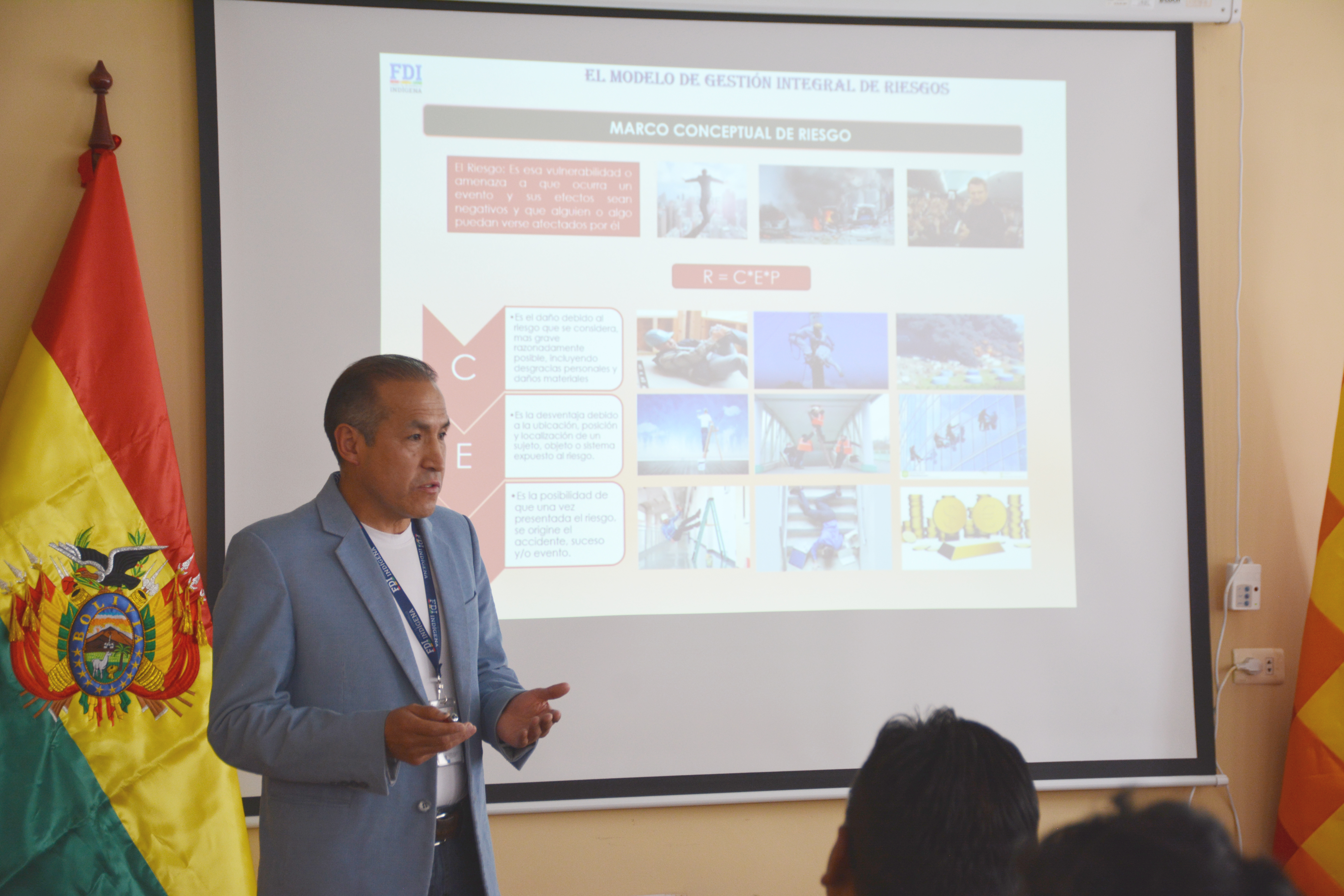 En instalaciones del FDI la máxima autoridad ejecutiva Lic. Delicia Rossio López Tolaba en compañía de los jefes, responsables de unidad y personal de la institución, participó del Taller de Capacitación de Gestión de Riesgos Para el Logro de Objetivos Institucionales, con la finalidad de implementar estrategias para una buena gestión integral en todas las actividades del Fondo de Desarrollo Indígena.