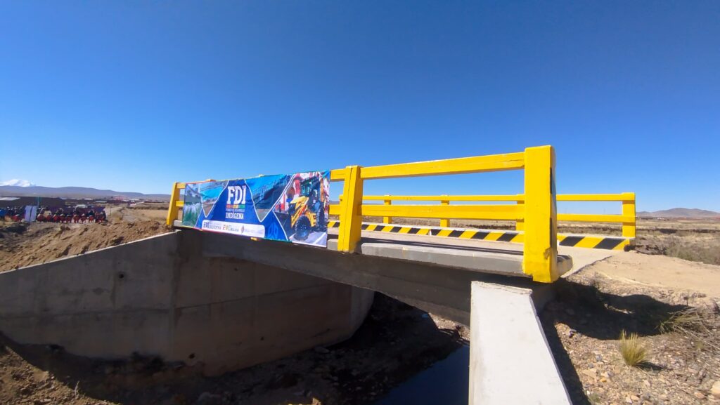 En un emotivo y significativo acto llevado a cabo en el municipio de Colquencha, provincia Aroma del departamento de La Paz, la directora general ejecutiva del Fondo de Desarrollo Indígena, Lic Delicia Rossio López Tolaba, realizó la entrega oficial de tres importantes puentes vehiculares: Puente Posocani, Puente San Juan y Puente Cala Chajo, obras que representan un avance sustancial en la infraestructura caminera de la región.