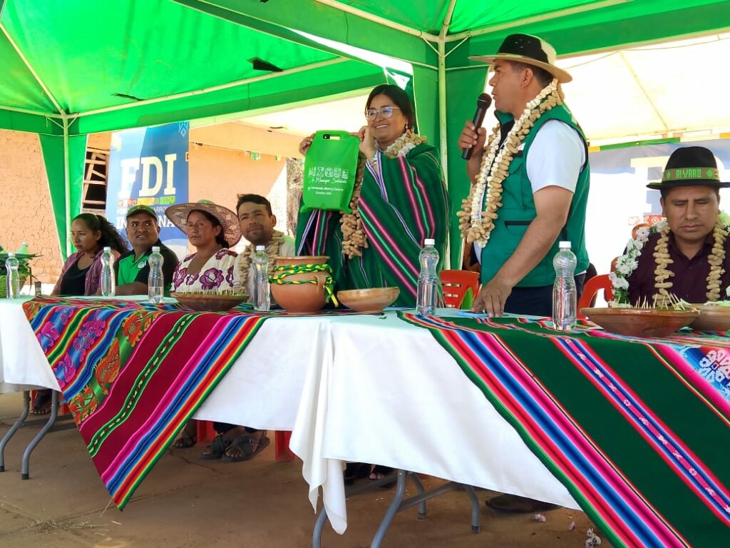 El Viceministro de Desarrollo Agropecuario Álvaro Mollinedo, en su discurso llamó a la unidad y felicitó al municipio por estos proyectos que han sido entregados, además se dirigió a los beneficiarios para que cuiden la maquinaria y unidos puedan seguir cosechando sus productos. Por su parte, la Directora General Ejecutiva del Fondo de Desarrollo Indígena Lic. Rossio López, en el acto principal felicitó al Alcalde por sus acciones coordinadas en unidad con la comunidad para hacer realidad este proyecto, además recordó que desde estas comunidades se hace realidad la seguridad y soberanía alimentaria del municipio y de todo el país.