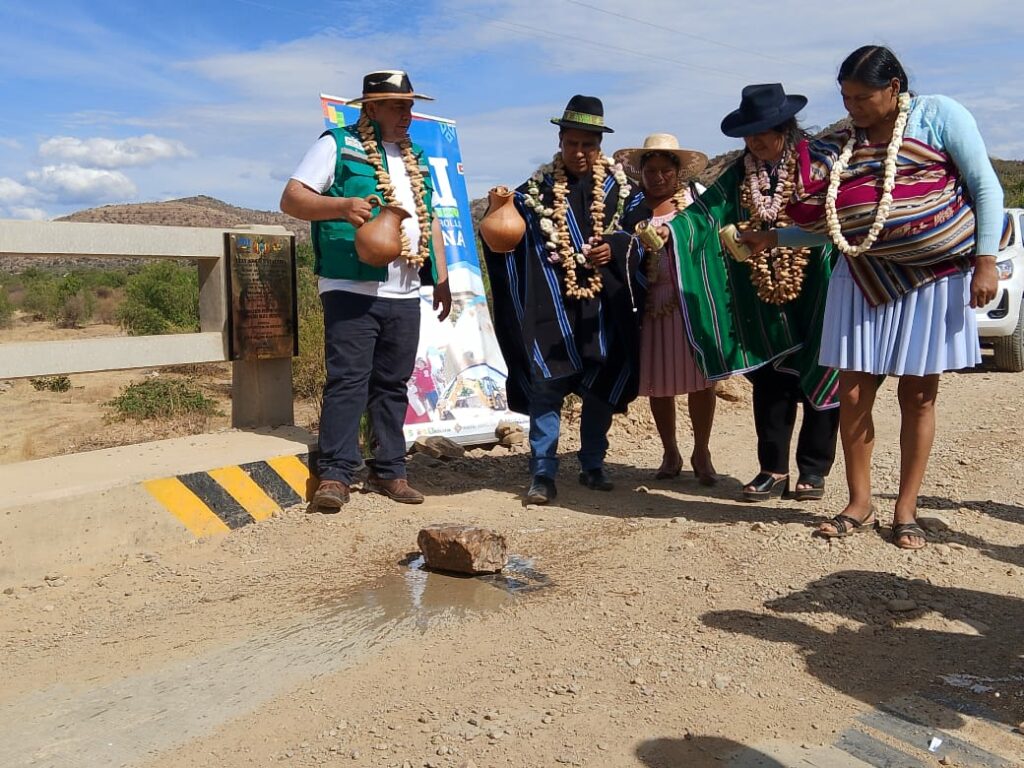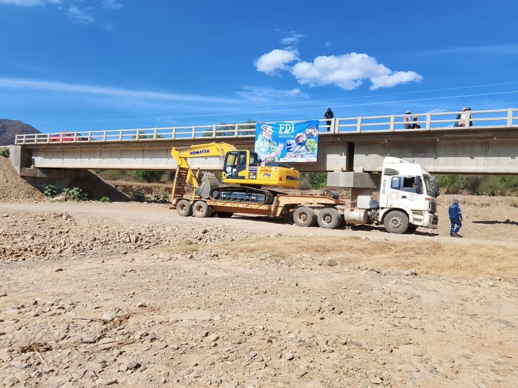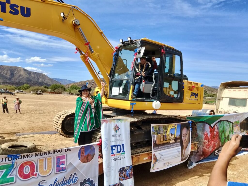 El municipio no solo recibió el puente sino que también una excavadora hidráulica que servirá para la construcción de 26 atajados en 25 comunidades que permitan incrementar 58 hectáreas de área cultivable para la producción de la papa en el municipio de Tiraque.