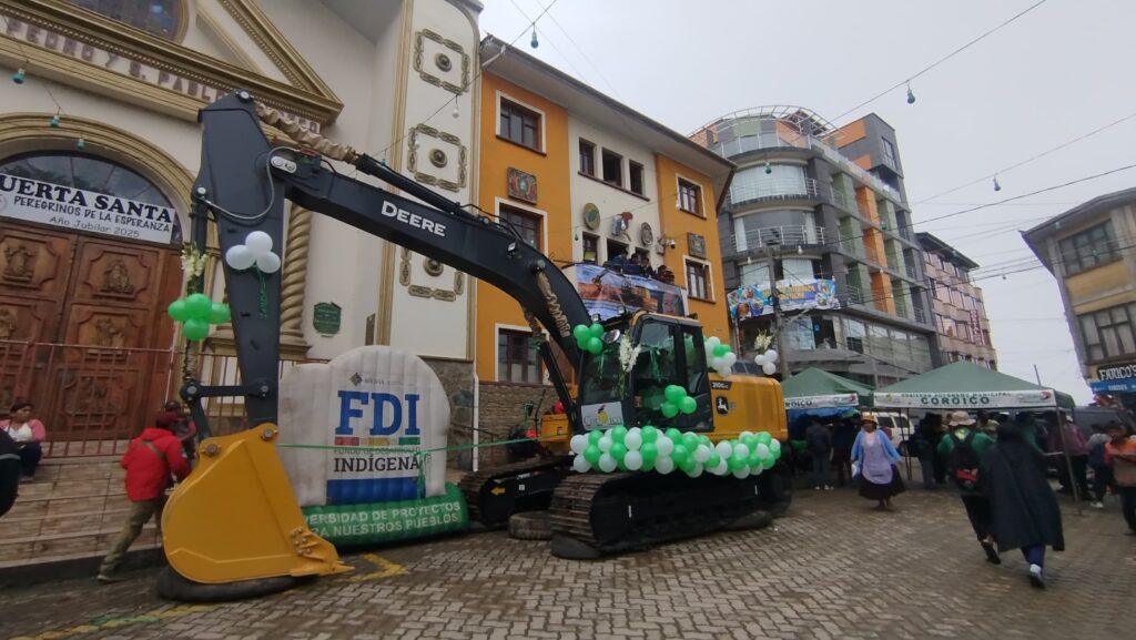 Con el objetivo de fortalecer la producción piscícola en el municipio de Coroico, el Fondo de Desarrollo Indígena (FDI) entregó una excavadora hidráulica como parte del programa “Equipamiento de Maquinaria Pesada para la Implementación de Estanques Piscícolas en Comunidades del Municipio de Coroico”, que beneficiará a 255 familias productoras.