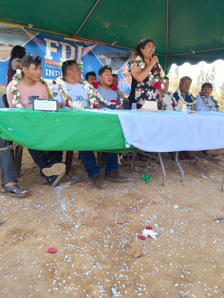 En su intervención la directora del FDI, dijo “gracias a la ejecución de proyectos que viene desarrollando nuestro hermano presidente Luis Arce y el Jilata David Choquehuanca son posibles, y permiten mejorar la calidad de vida de nuestra gente, impulsando el desarrollo de nuestros productores”, finalizó.