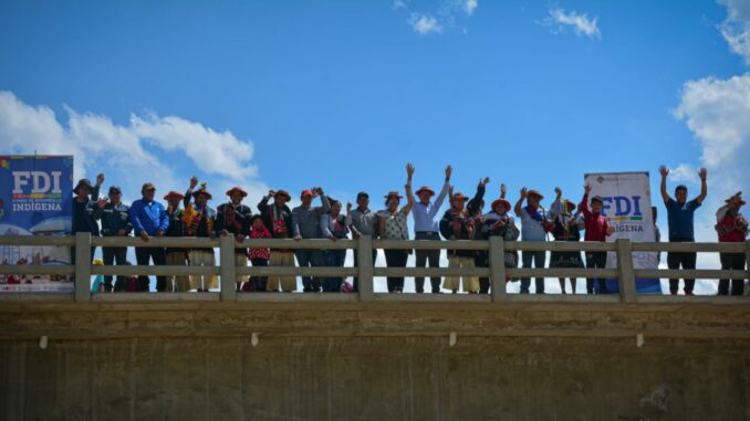 Vitichi, 04 de niviembre (Prensa FDI). – El presidente del Estado Plurinacional de Bolivia, Lic. Luis Alberto Arce Catacora, el Ministro de Medio Ambiente y Agua Rubén Méndez Estrada y la directora General Ejecutiva del Fondo de Desarrollo Indígena Lic. Delicia Rossio López Tolaba, llegaron al departamento de Potosí, municipio de Vitichi, para hacer la entrega del proyecto de construcción puente vehicular Quiquila.