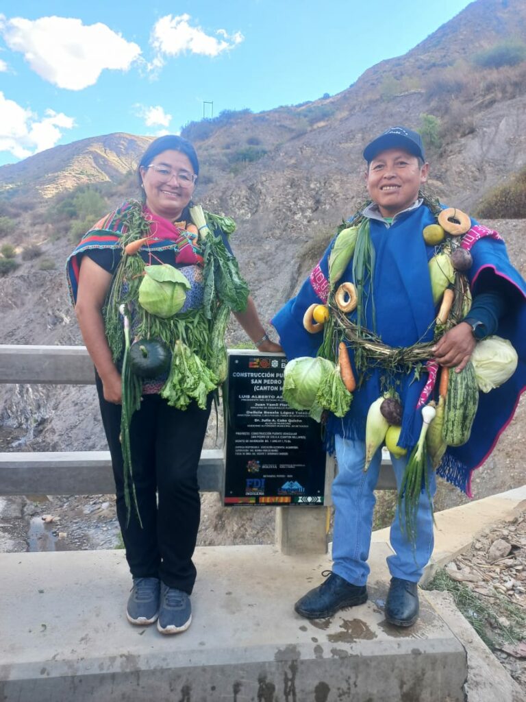 Con la presencia del Viceministro de Desarrollo Agropecuario Alvaro Mollinedo, la Directora del FDI Lic. Rossio López, el alcalde del municipio de Betanzos, Dr. Julio Arturo Caba y Organizaciones Sociales, se realizó la entrega del puente vehicular San Pedro de Colila, en el cantón Millares. La obra representa un avance significativo para la comunidad beneficiaria, compuesta por 110 familias, y se convierte en una estructura clave para mejorar la conectividad y fortalecer la economía local.