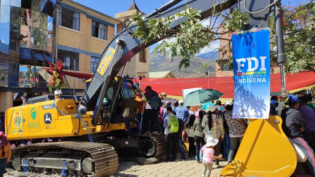 La Paz, 09 agosto 2024. – El Fondo de Desarrollo Indígena, la mañana de este viernes en el municipio de Cajuata, realizó la entrega de maquinaria agrícola para la construcción de q’otañas, que resolverá el problema de la falta de riego de los cultivos de papa para en las comunidades de municipio.