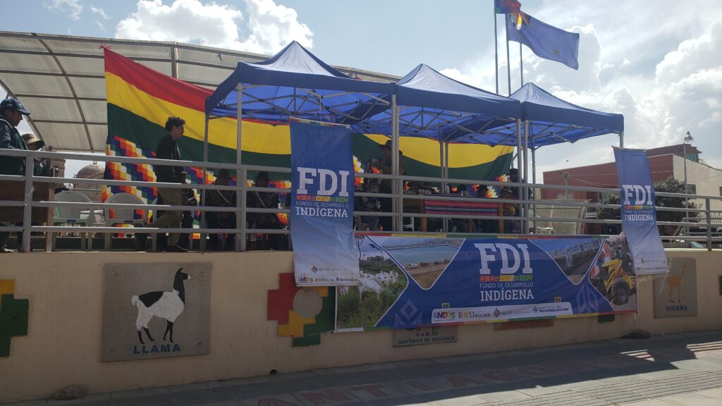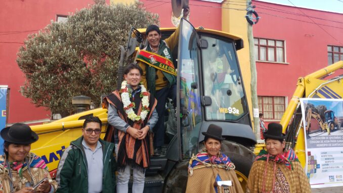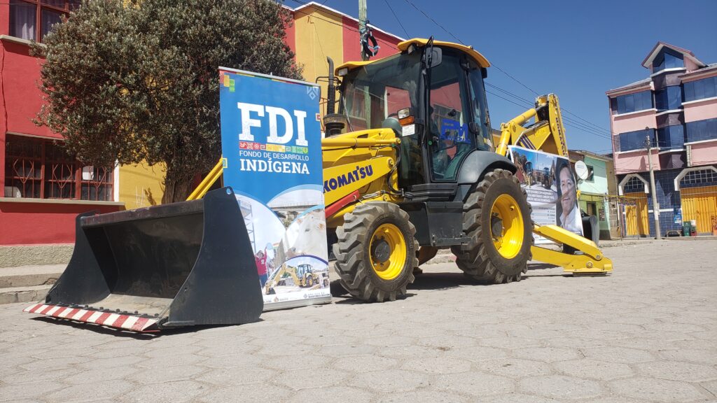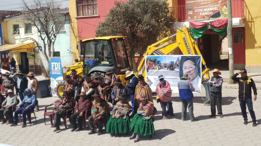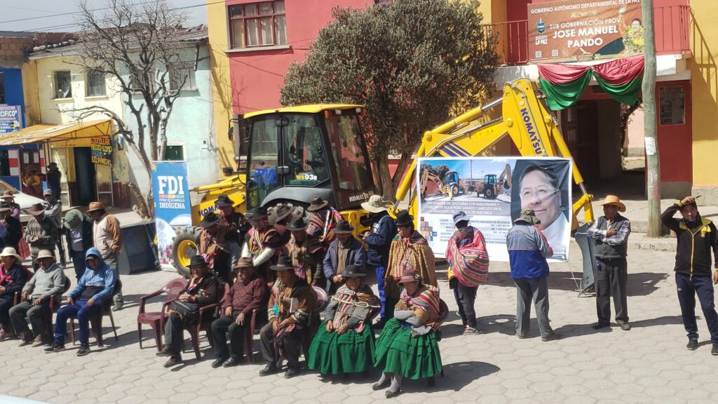 La Paz, FDI (06 de Septiembre de 2024) .- Gracias a las gestiones del Gobierno del presidente Lucho Arce, se hizo entrega de maquinaria pesada al municipio de Santiago de Machaca, con el propósito de fortalecer el sector agropecuario. Este equipamiento se adquirió con un financiamiento de Bs 1.150.000,00 proveniente del Fondo de Desarrollo Indígena (FDI), y una contraparte del Gobierno Autónomo Municipal (GAM) de Santiago de Machaca, que aportó Bs 147.562,00. En total, la inversión asciende a Bs 1.297.562,00, destinada a la implementación de proyectos de cosecha de agua, fundamentales para el consumo del ganado camélido.