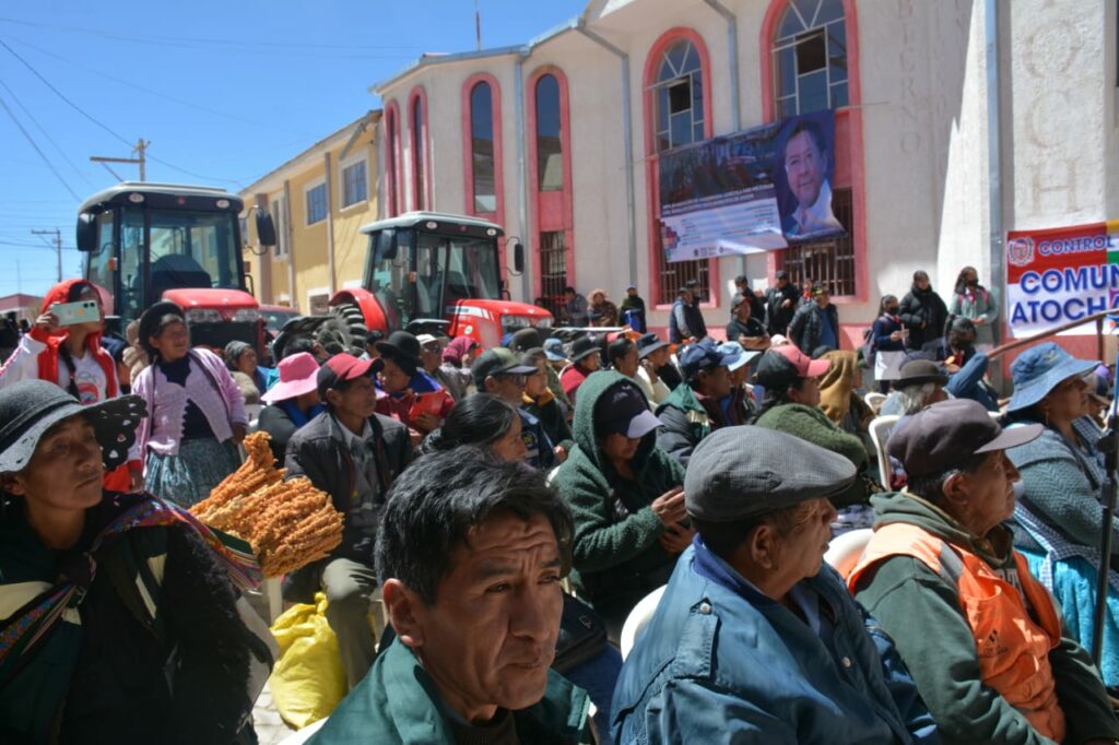 El municipio de Atocha del departamento de Potosí recibió este viernes al viceministro de Tierras, Ramiro Guerrero Peñaranda, y a la directora General Ejecutiva del Fondo de Desarrollo Indígena (FDI), Lic. Delicia Rossio López Tolaba, quienes entregaron dos tractores agrícolas y otros implementos para el proyecto de Implementación de Maquinaria Agrícola en procura de mejorar las áreas de cultivo de quinua en esta población.