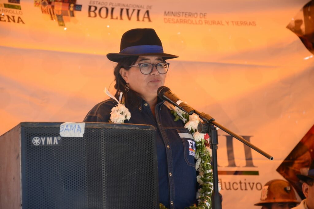 “Por primera vez que el municipio de Atocha se beneficia con esta maquinaria tan importante, es la línea de nuestro hermano presidente, apoyar a nuestros pequeños productores, porque son ustedes quienes deben garantizar la materia prima, para la seguridad y la soberanía alimentaria de todos nuestros hermanos bolivianos y bolivianas”, dijo la Máxima Autoridad Ejecutiva del FDI.