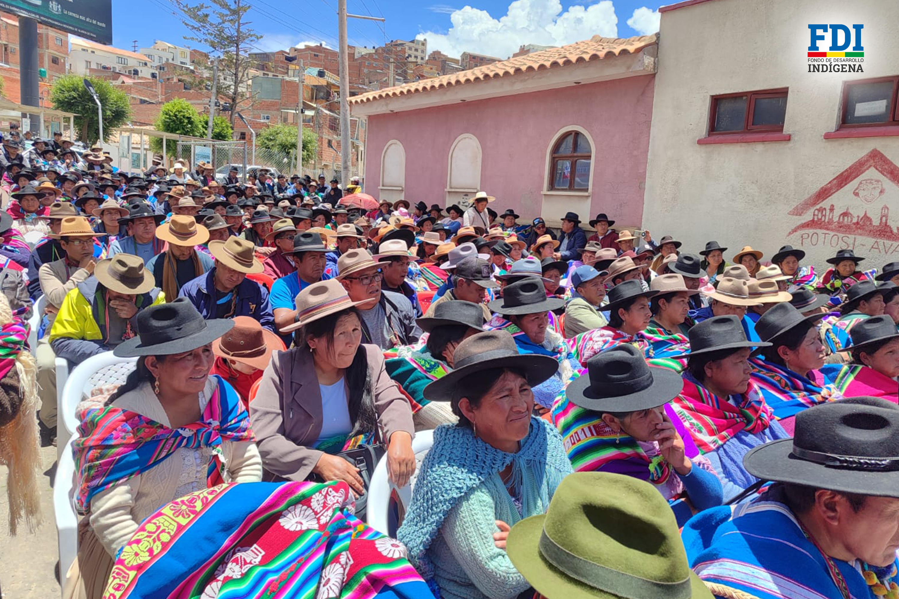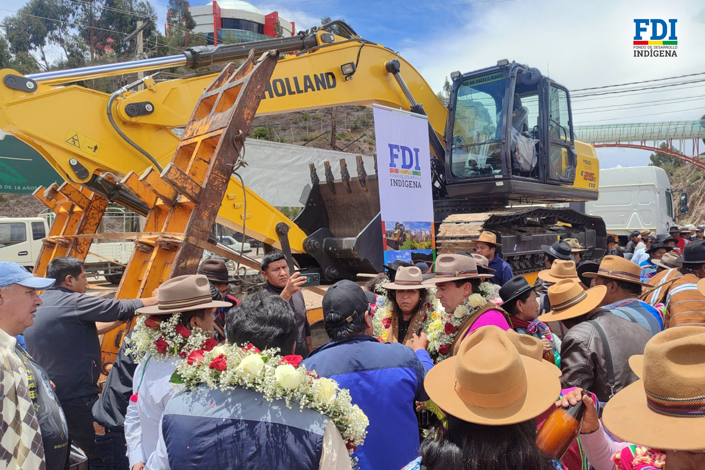 Potosí, 16 de enero de 2026 (FDI). – En el marco de las políticas de fortalecimiento al desarrollo productivo impulsadas por el Ministerio de Desarrollo Productivo, Rural y Agua, el Director General Ejecutivo del Fondo de Desarrollo Indígena (FDI), Ing. Sergio Alan Barba Gonzales, participó en el acto protocolar de entrega de una excavadora hidráulica, correspondiente al proyecto “Construcción de atajados de tierra para el aprovechamiento de terrenos productivos en el Distrito 14 del municipio de Potosí y las 16 comunidades beneficiarias”, iniciativa destinada a mejorar la producción agrícola de la región. El proyecto cuenta con un financiamiento de Bs 1.250.000, otorgado por el Fondo de Desarrollo Indígena (FDI) y permitirá la construcción de 20 atajados de cosecha de agua en comunidades del Distrito 14 del municipio de Potosí contribuyendo al fortalecimiento de la producción de papa, haba y cebada forrajera, beneficiando de manera directa a 392 familias de las comunidades de Chullchucani, Candelaria, Pati Pati, Suntur Huasi, Gran Peña, Irupampa Chica, Cala Cala, Palca Mayu, Samasa Baja, Teja Tambo, Alpacani, Leche Huira, Chilimocko, Karachipampa, Kalla Waka y Jesús Valle. Durante su intervención, la máxima autoridad del FDI afirmó que, gracias a la adquisición de la excavadora hidráulica, este proyecto permitirá ejecutar la construcción de atajados en todo el Distrito 14, alcanzando a las 392 familias beneficiarias y fortaleciendo la producción agrícola de las 16 comunidades. Asimismo, reafirmó el compromiso institucional del Fondo de Desarrollo Indígena de trabajar con transparencia, responsabilidad y sin corrupción, en favor de las comunidades beneficiarias. Por su parte, las familias beneficiarias, a través de sus autoridades, expresaron su agradecimiento por el apoyo y el financiamiento recibidos, resaltando que este proyecto hace realidad el anhelo de contar con una maquinaria que contribuirá significativamente a mejorar las condiciones de producción y el desarrollo económico de sus comunidades.