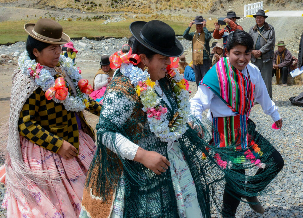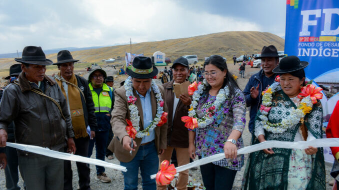 Huarina, 24 de octubre (Prensa FDI). – Este martes la directora General Ejecutiva del Fondo de Desarrollo Indígena Lic. Delicia Rossio López Tolaba, y el Vice Ministro de Desarrollo Agropecuario Álvaro Mollinedo, llegaron al municipio de Huarina, comunidad Coromata Alta, para hacer la entrega del puente vehicular rio Layuni – Huarina, mismo que beneficiará a varias comunidades del sector para que puedan trasladar sus cosechas a distintos puntos del país.