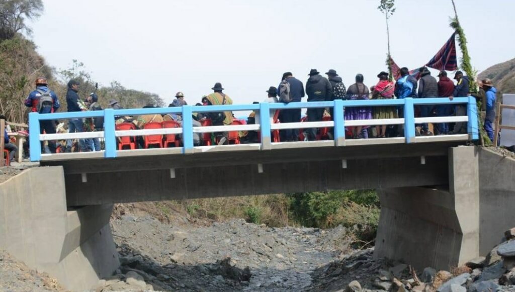 El ministro de Desarrollo Rural y Tierras Ing. Remmy Rubén Gonzales Atila, y la directora General Ejecutiva del Fondo de Desarrollo Indígena Lic. Delicia Rossio López Tolaba, llegaron al municipio de Palca, comunidad Coquecota, para hacer la entrega de 3 puentes vehiculares “Construcción puente vehicular Rio Molienda – Cerro Negro”, “Construcción puente vehicular Tahuapalca”, “Construcción puente vehicular Choquecota”.