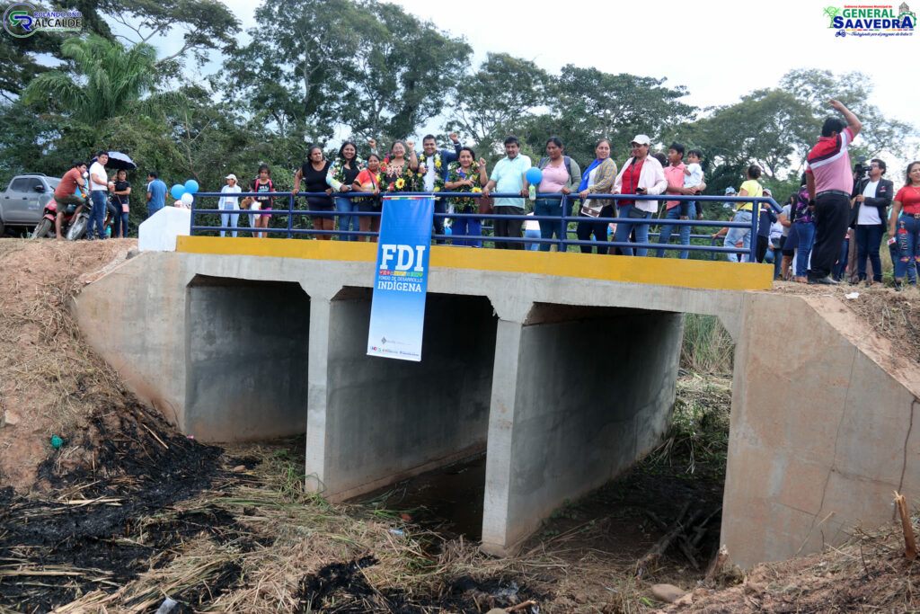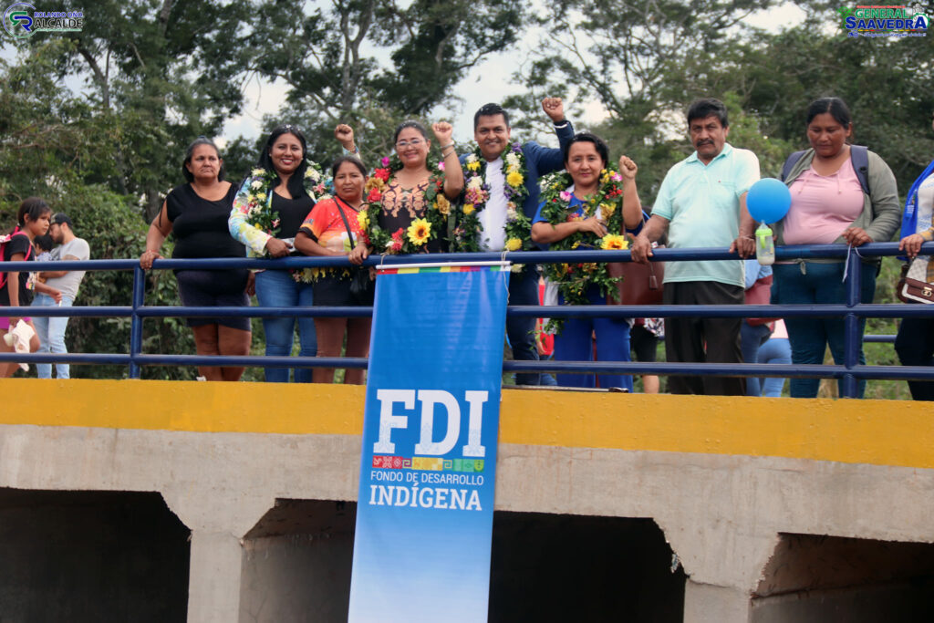Municipio de General Saavedra, Santa Cruz. El Fondo de Desarrollo Indígena (FDI) ha llevado a cabo importantes iniciativas en el municipio de General Saavedra, Santa Cruz, destinadas a mejorar la infraestructura y la producción agrícola local. Entre las entregas se encuentran tres puentes tipo cajón conectado el municpio de manera integral y maquinaria agrícola, con el objetivo de rehabilitar áreas agrícolas, beneficiando de manera significativa a los productores rurales y estimulando la economía local.