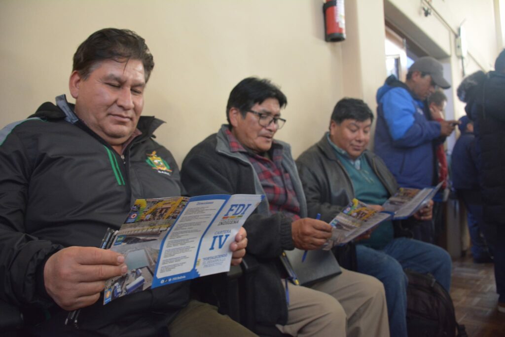 La Paz, 5 de Septiembre (Prensa FDI).- La Directora General Ejecutiva del Fondo de Desarrollo Indígena (FDI), Lic. Delicia Rossio López Tolaba, realizó un periplo por los nueve departamentos del territorio nacional, con el propósito de socializar la Cartera IV con los Gobiernos Autónomos Municipales (GAM´s) y los Gobiernos Autónomos Indígenas Originarios Campesinos (GAIOC´s).