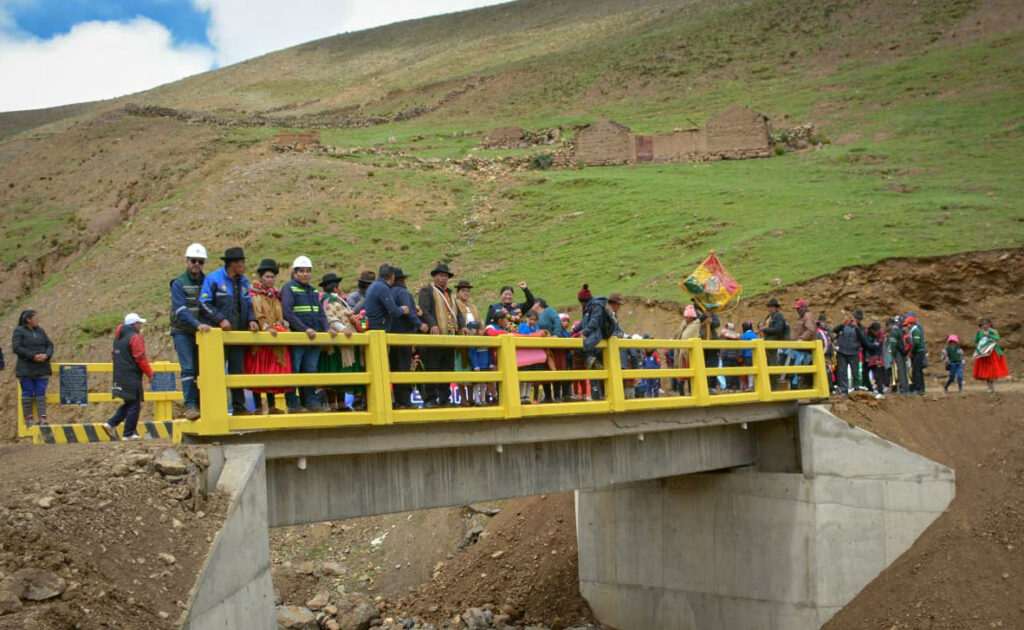 Más de 130 familias de las comunidades de Huayna Toco, Challa, Luruta y Yunguyo se benefician con la entrega de dos nuevos puentes vehiculares que mejoran significativamente la transitabilidad y conectividad en el municipio de Ichoca, departamento de La Paz.