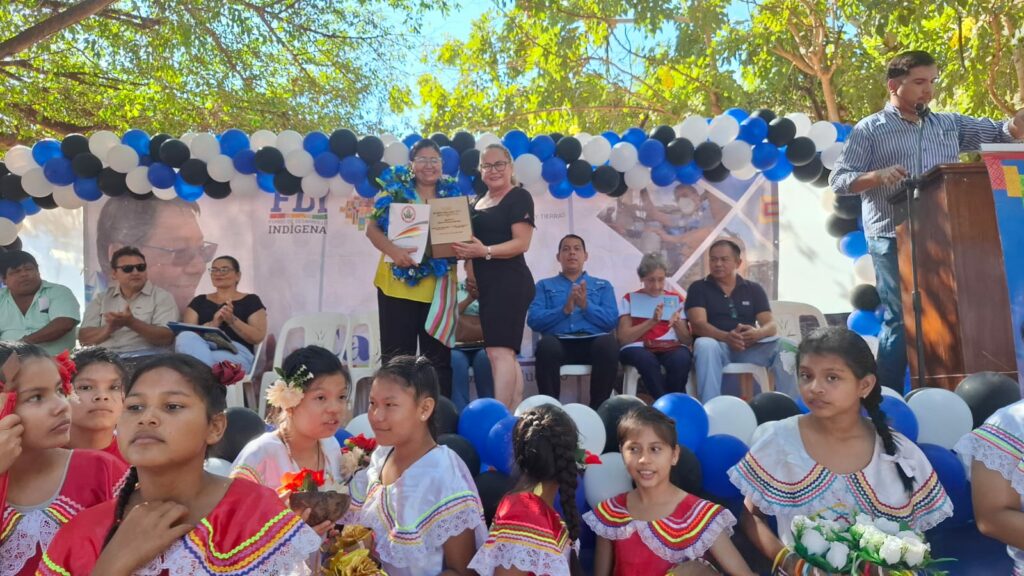 A nombre del Gobierno nacional y del ministerio de Desarrollo Rural y Tierras, la directora general ejecutiva del Fondo de Desarrollo Indígena entregó 1 retroexcavadora para la construcción de 41 atajados para el almacenamiento de agua de 45.717 metros cúbicos que permitirá el mejoramiento de 120 hectáreas de pastos naturales.