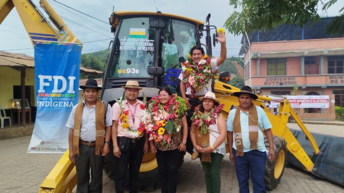 FDI | Mapiri (19 de Abril. 2025). – El Gobierno del presidente Lucho Arce a través de la directora del Fondo de Desarrollo Indígena Lic. Delicia Rossio López Tolaba, este fin de semana entregó maquinaria pesada para la rehabilitación de suelos agropecuarios que beneficiará a 200 familias de manera directa.