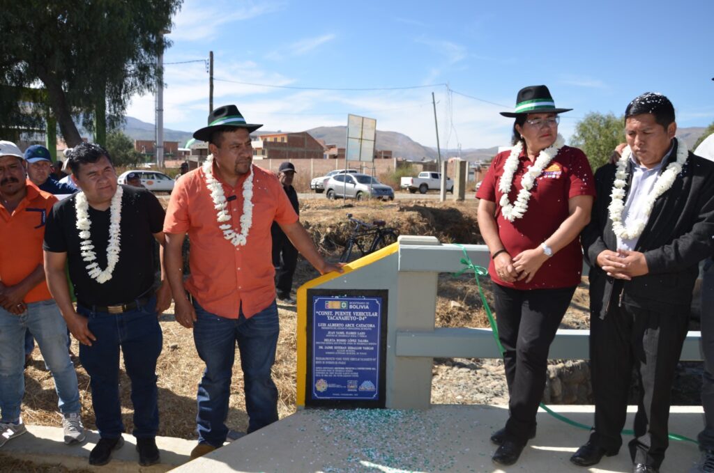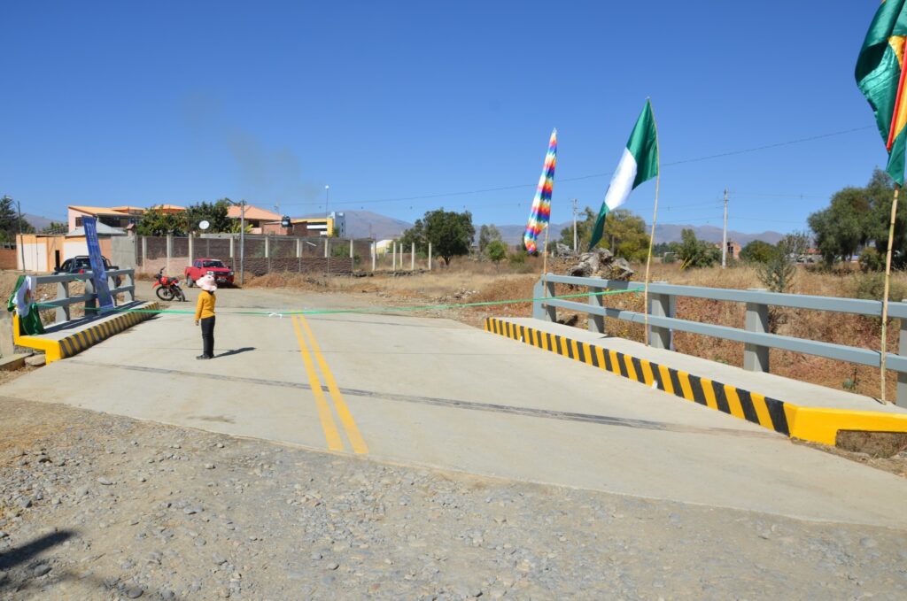 La primera obra corresponde a la construcción del puente vehicular tipo cajón Yacanahuyo (D4) de 6,90 metros de longitud y 8 metros de ancho de calzada, con accesos reforzados y protección con gaviones. Este puente garantiza la transitabilidad vehicular y peatonal durante todo el año y beneficia directamente a 88 familias productoras, con un financiamiento total de Bs 536.088,03 de los cuales el financió Bs 499.215,13 y el GAM Punata Bs 36.872,90. La obra permitirá dinamizar la actividad agrícola y facilitar la comercialización de cultivos hacia centros de consumo.