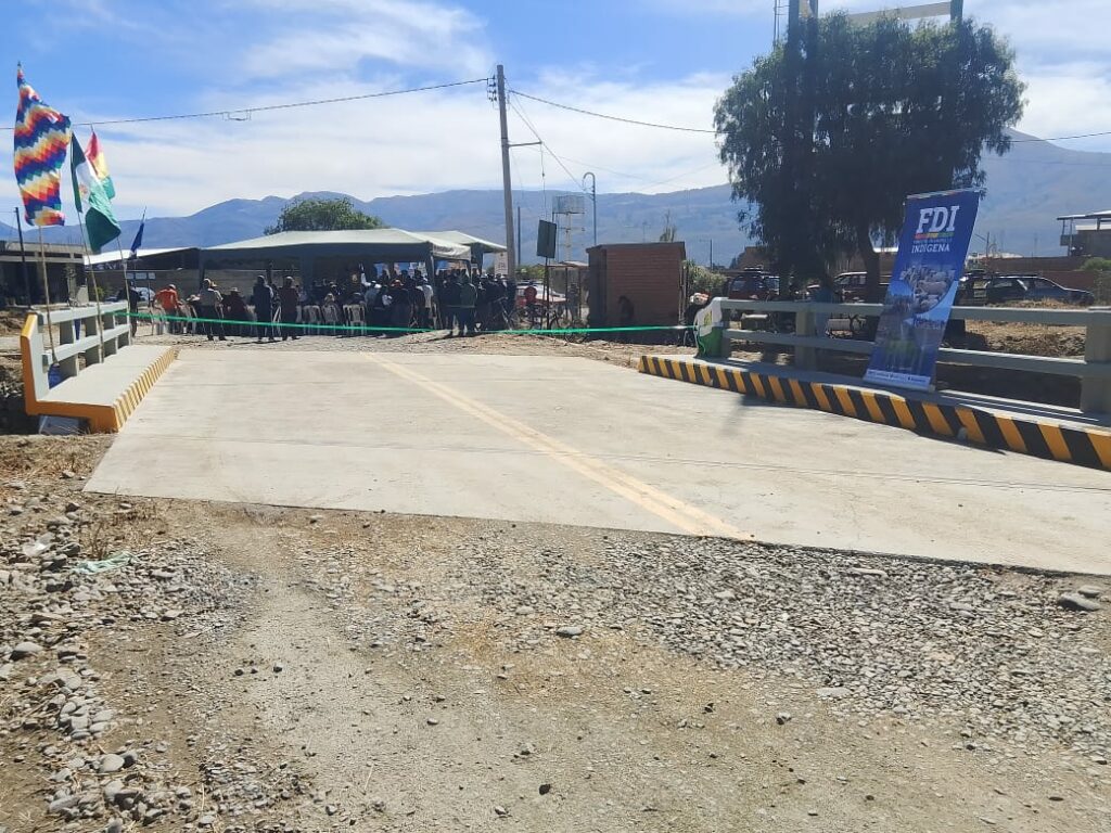 Con el objetivo de fortalecer el desarrollo productivo en las comunidades rurales, el ministro de Desarrollo Rural y Tierras, Yamil Flores Lazo, junto a la Directora del Fondo de Desarrollo Indígena (FDI), Rossío López, Tolaba, entregaron este jueves dos obras clave en el municipio de Punata: un puente vehicular en la comunidad Yacanahuyo y la ampliación del sistema de riego tecnificado en la comunidad Iluri Bajo, ambas destinadas a mejorar la conectividad y comercialización de la producción y la seguridad alimentaria en la región.