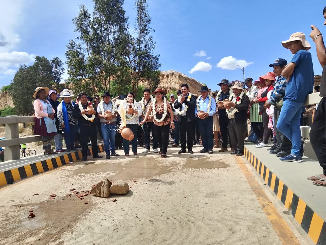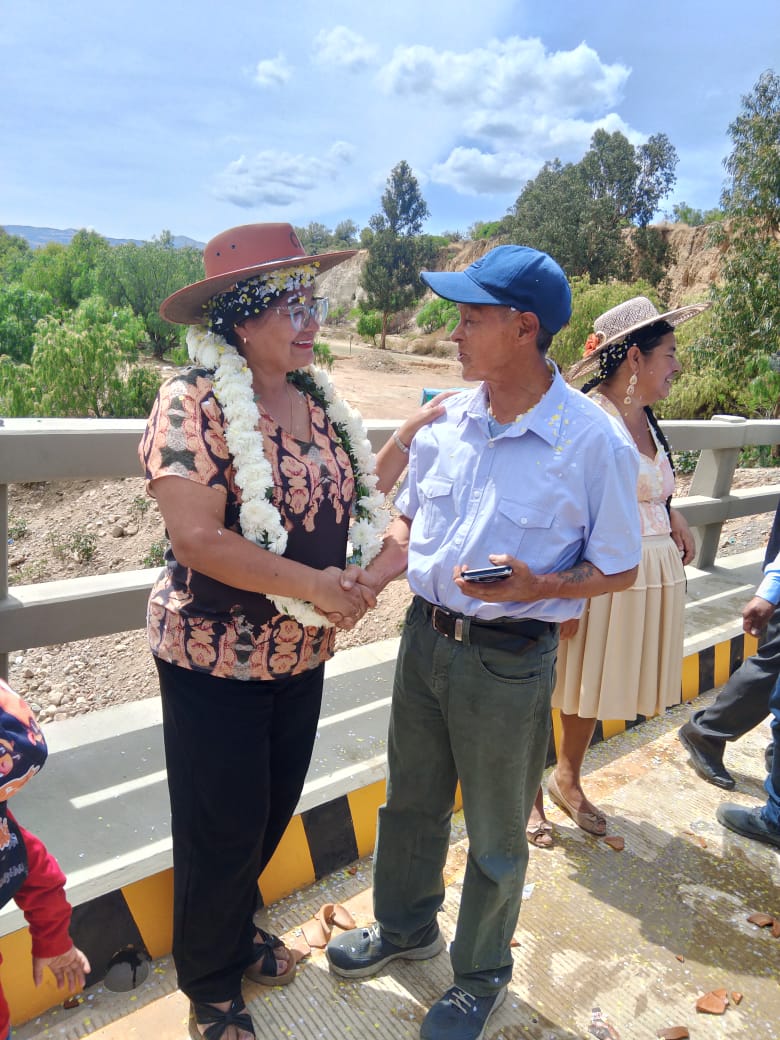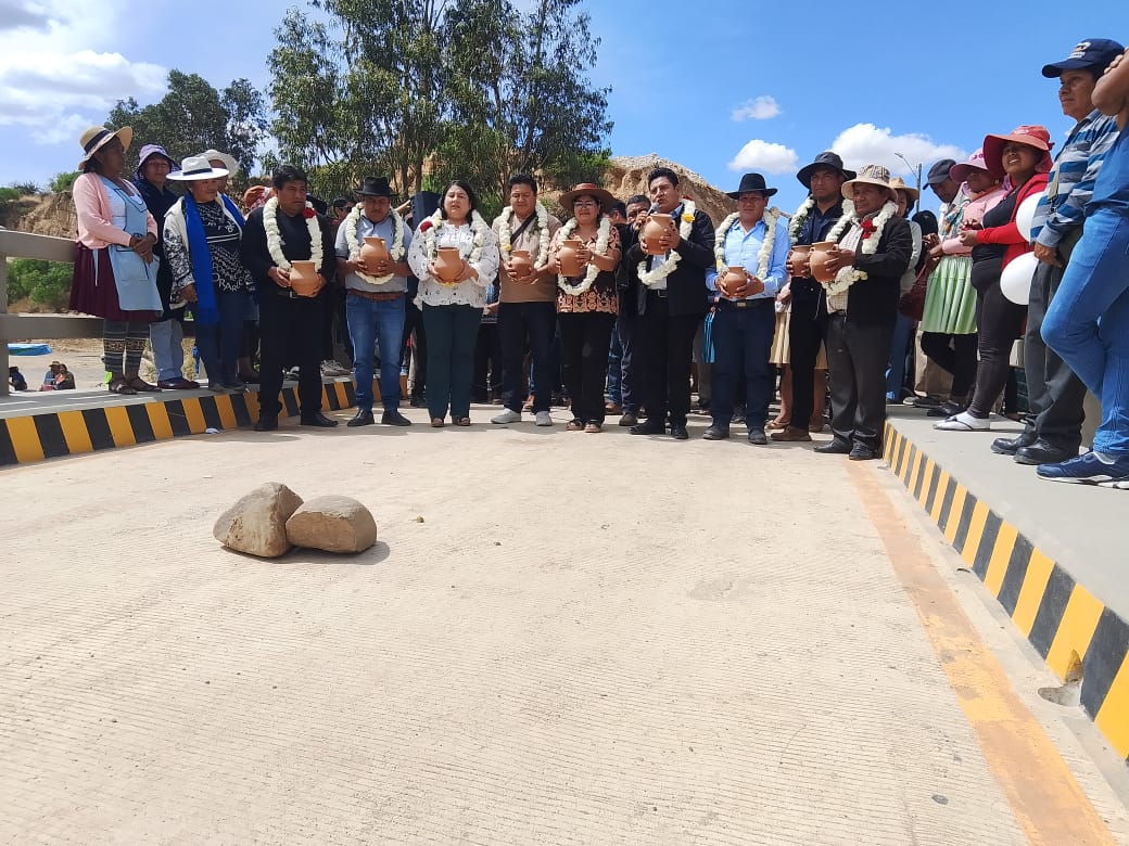 Entrega del puente vehicular Curubamba, ubicado en el Distrito 7 del municipio de Sacaba, con una inversión de Bs 1.891.223,00. Esta importante obra beneficiará a 204 familias productoras