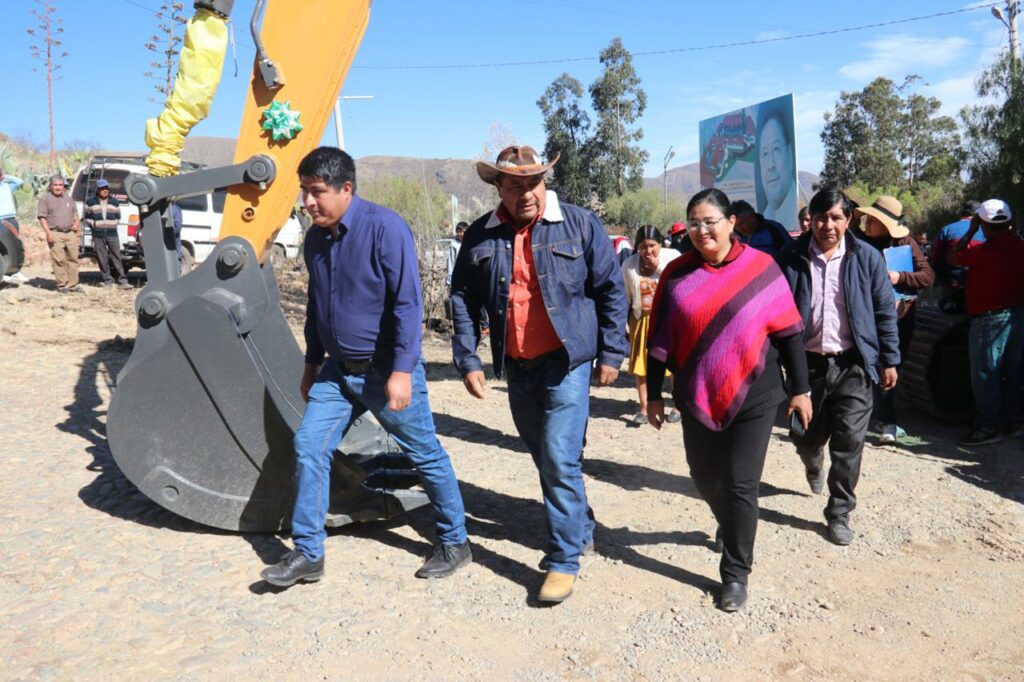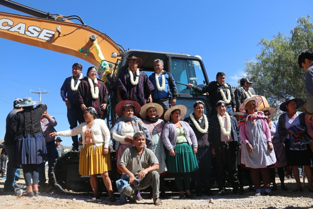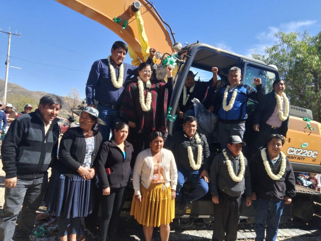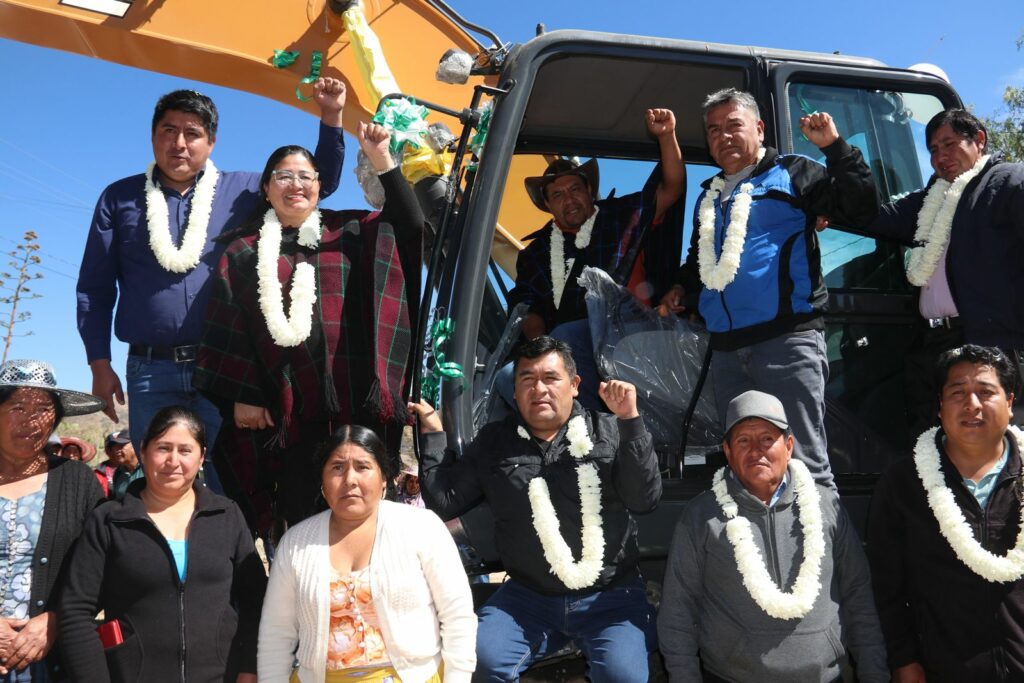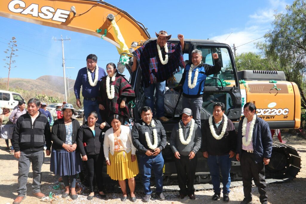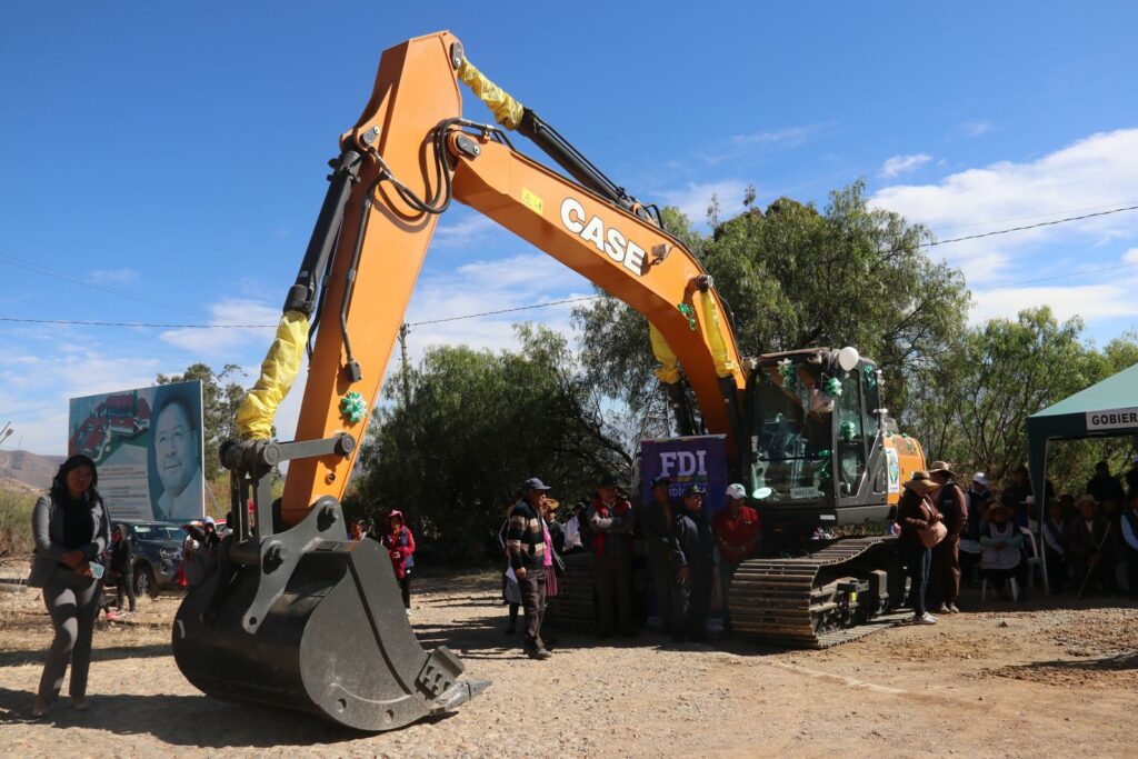 El Gobierno del presidente Lucho Arce Catacora a través del Ministro de Desarrollo Rural y Tierras Juan Yamil Flores Lazo y de la Directora General Ejecutiva Fondo de Desarrollo Lic. Delicia Rossio López Tolaba, entregó este jueves una excavadora para la construcción de 18 atajados de agua para riego en 10 comunidades productoras de papa, cebada y cebolla verde en el municipio de Villa Gualberto Villarroel.