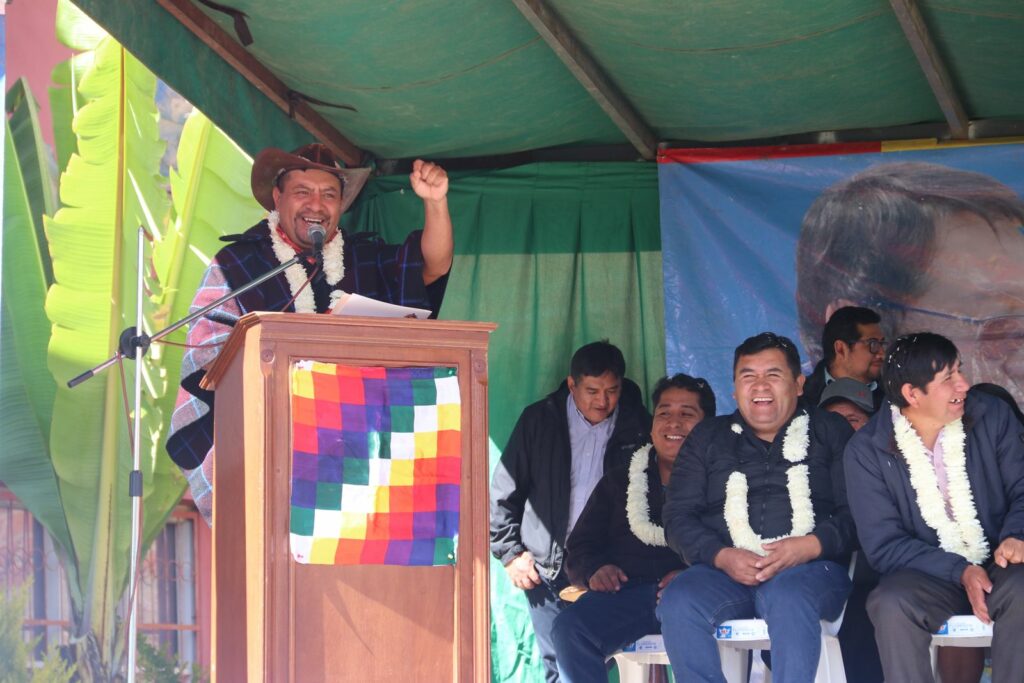 FDI / Villa Gualberto Villarroel – Cochabamba 3. julio. 2025. – El Gobierno del presidente Lucho Arce Catacora a través del Ministro de Desarrollo Rural y Tierras Juan Yamil Flores Lazo y de la Directora General Ejecutiva Fondo de Desarrollo Lic. Delicia Rossio López Tolaba, entregó este jueves una excavadora para la construcción de 18 atajados de agua para riego en 10 comunidades productoras de papa, cebada y cebolla verde en el municipio de Villa Gualberto Villarroel.