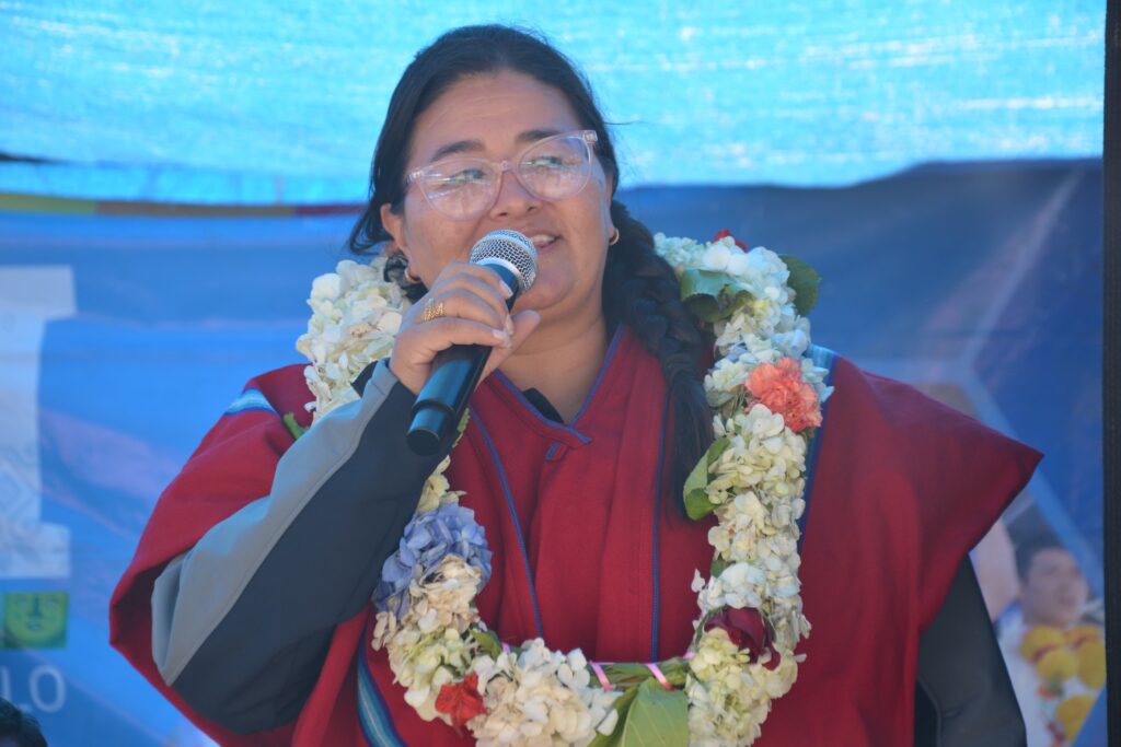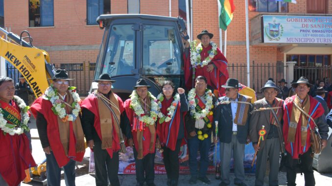 FDI / Santiago de Huata – La Paz 16. mayo. 2025). – El Gobierno del presidente Lucho Arce Catacora a través del Viceministro de Desarrollo Agropecuario Álvaro Mollinedo y de la Directora General Ejecutiva Fondo de Desarrollo Indígena (FDI), Lic. Delicia Rossio López Tolaba, entregaron este jueves una excavadora para la construcción de atajados de agua con el objetivo de fortalecer y mejorar la producción ganadera en las comunidades del municipio de Santiago de Huata.