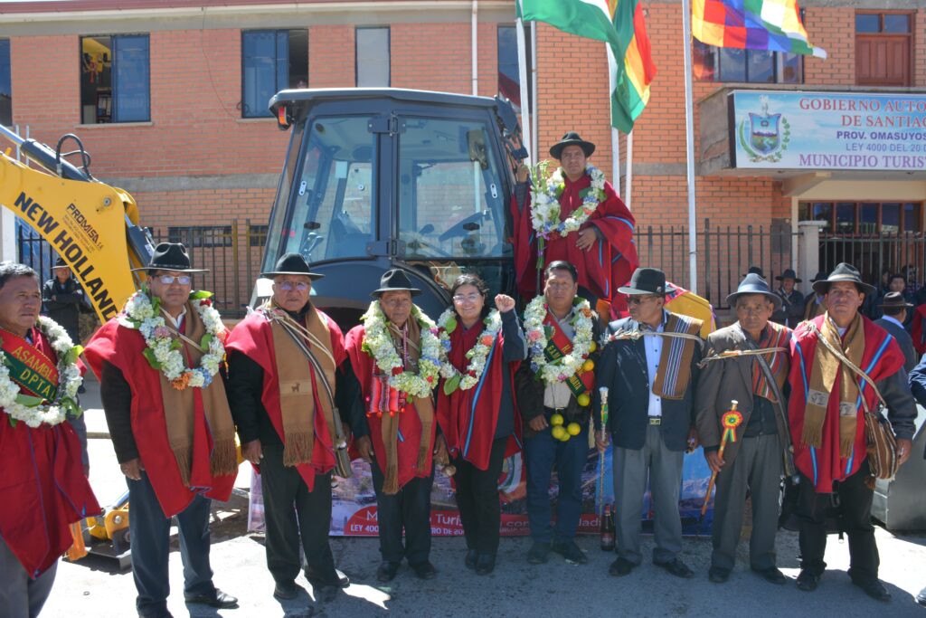 El Gobierno del presidente Lucho Arce Catacora a través del Viceministro de Desarrollo Agropecuario Álvaro Mollinedo y de la Directora General Ejecutiva Fondo de Desarrollo Indígena (FDI), Lic. Delicia Rossio López Tolaba, entregaron este jueves una excavadora para la construcción de atajados de agua con el objetivo de fortalecer y mejorar la producción ganadera en las comunidades del municipio de Santiago de Huata.