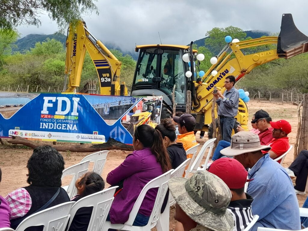 El Gobierno del presidente Lucho Arce, a través del Fondo de Desarrollo Indígena (FDI), entregó este jueves maquinaria pesada para la “construcción de reservorios y almacenamiento de agua, para ganado bovino en comunidades de Machareti”. en el departamento de Chuquisaca.