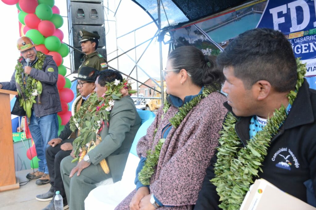 El evento contó con la destacada presencia del presidente del Estado Plurinacional de Bolivia, Luis Arce Catacora, quien reafirmó el compromiso de su gobierno con el fortalecimiento del sector productivo y el desarrollo de las comunidades rurales. También participó la directora general ejecutiva del FDI, Delicia Rossio López Tolaba, quien resaltó la importancia de estas obras para mejorar las condiciones de vida de las familias beneficiarias.