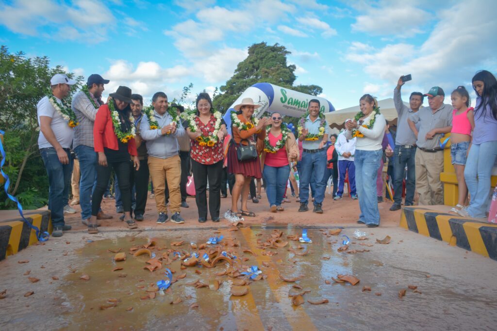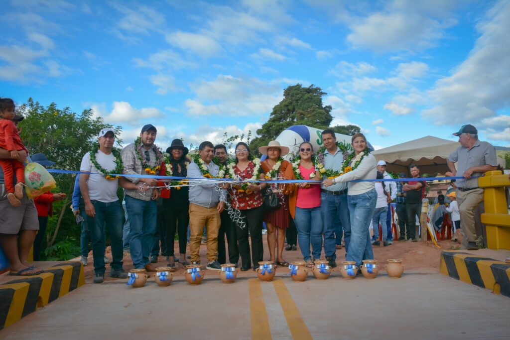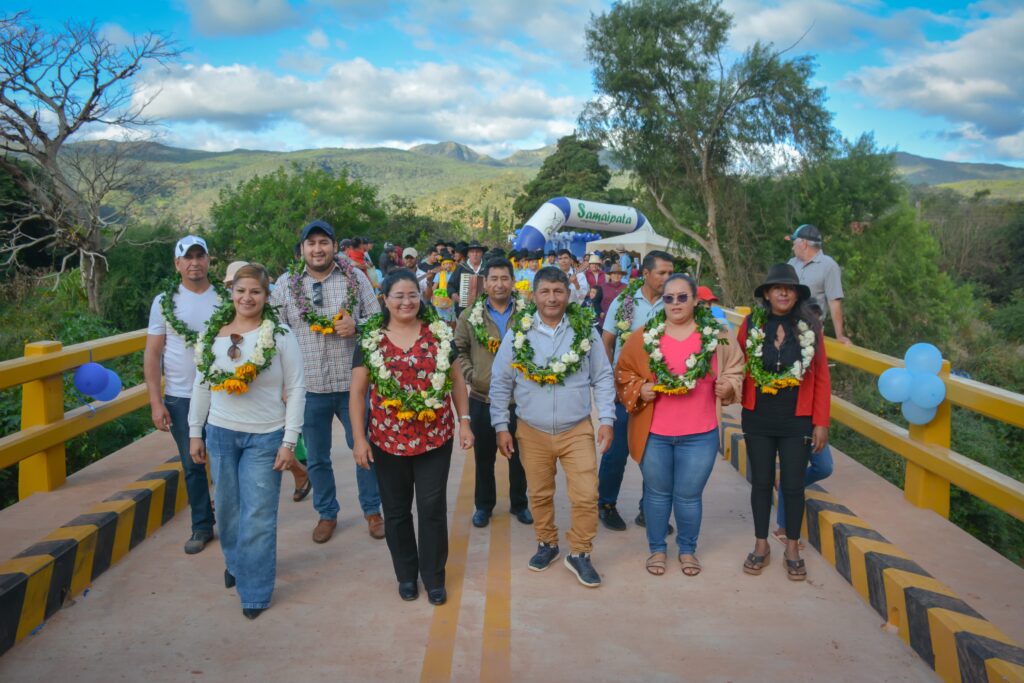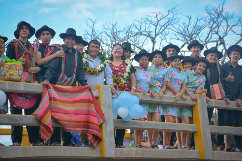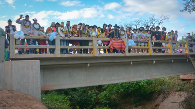 FDI | Samaipata – Santa Cruz 24 de mayo de 2025.– El Gobierno nacional a través del Fondo de Desarrollo Indígena (FDI), entregó este fin de semana un puente vehicular que con el objetivo de establecer conexión vial, garantizando la transitabilidad vehicular permanente, incrementando la producción y comercialización de productos de la zona y así mejorar el desarrollo productivo de las comunidades beneficiarias y de la región.