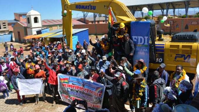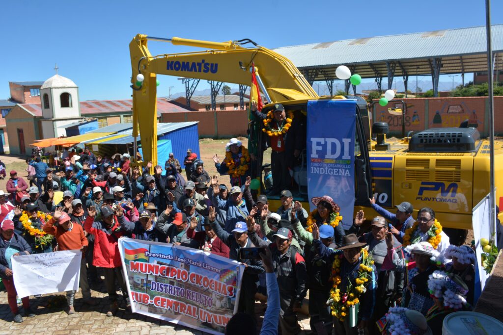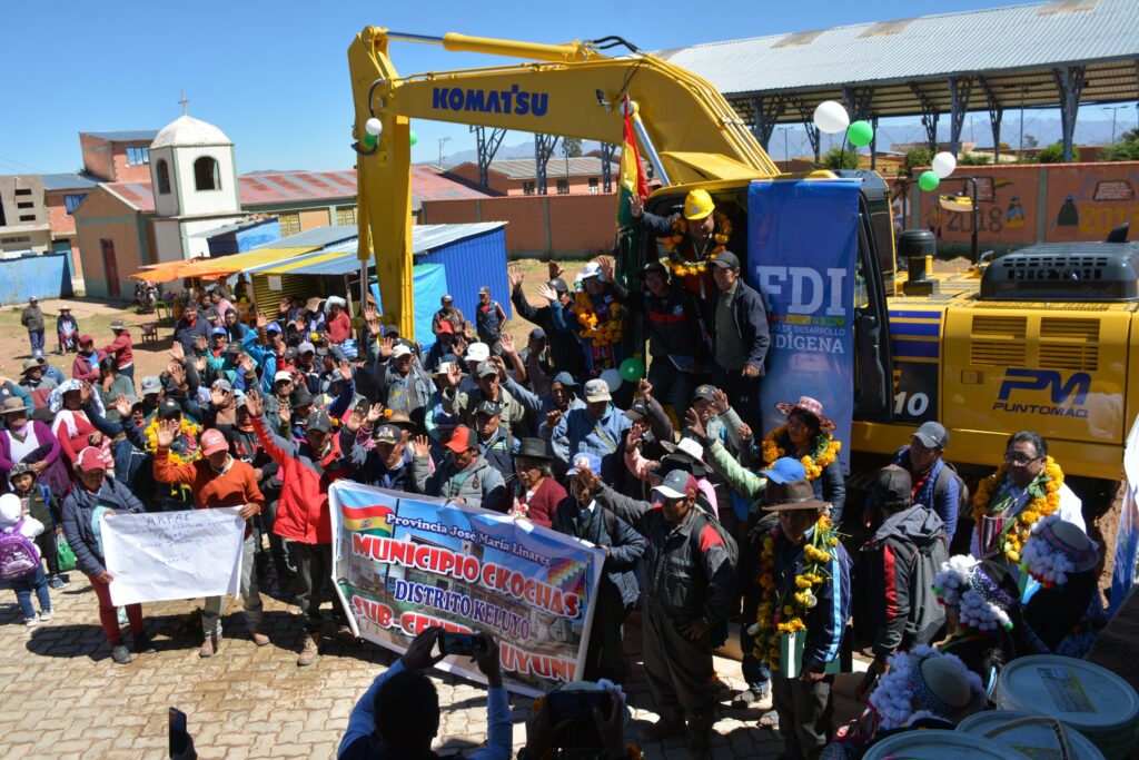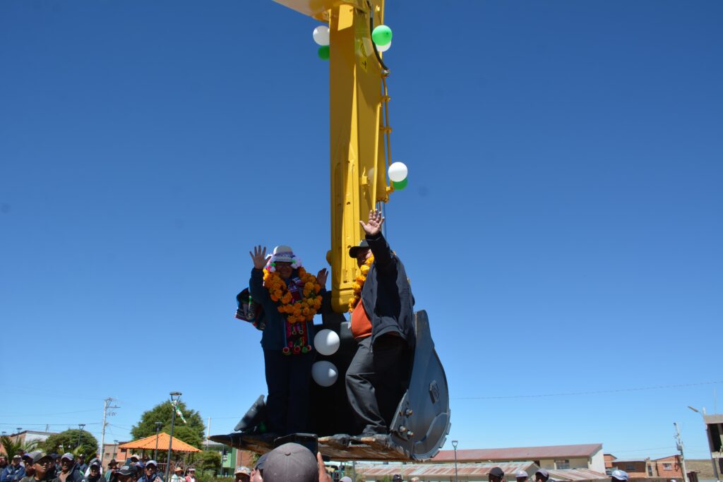 El presidente Lucho Arce Catacora a través del Ministerio de Desarrollo Rural y Tierras y de la directora general ejecutiva del Fondo de Desarrollo Indígena Lic. Delicia Rossio López Tolaba entregó este jueves 1 excavadora para el fortalecimiento a la producción agrícola en el municipio de Ckochas de la Villa Imperial