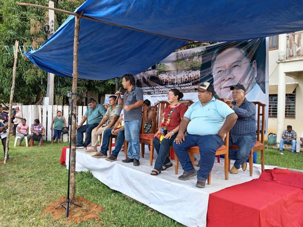 FDI / Bella Flor, 22 de abril de 2025.– Con el objetivo de garantizar la producción ganadera en distintas regiones de nuestro Estado Plurinacional de Bolivia, el presidente Lucho Arce a través de la directora ejecutiva del el FDI Lic. Delicia Rossio López Tolaba, entregó 85 cabezas de ganado como parte del proyecto de fortalecimiento a productores de ganado bovino en el municipio de Bella Flor del departamento de Pando.