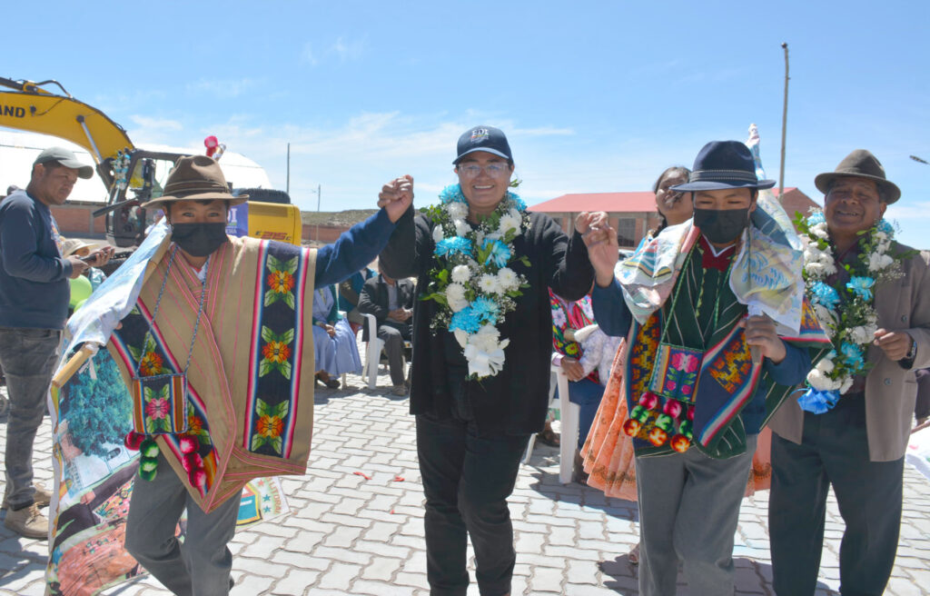 FDI / Coipasa/ Oruro (26. abril. 2025).- El presidente Lucho Arce Catacora a través del Ministerio de Desarrollo Rural y Tierras y de la directora general ejecutiva del Fondo de Desarrollo Indígena Lic. Delicia Rossio López Tolaba entregó este este fin de semana 1 excavadora hidráulica para la construcción de vigiñas y atajados en el marco del fortalecimiento al sector camelido en 8 comunidades del municipio de Coipasa del departamento de Oruro.