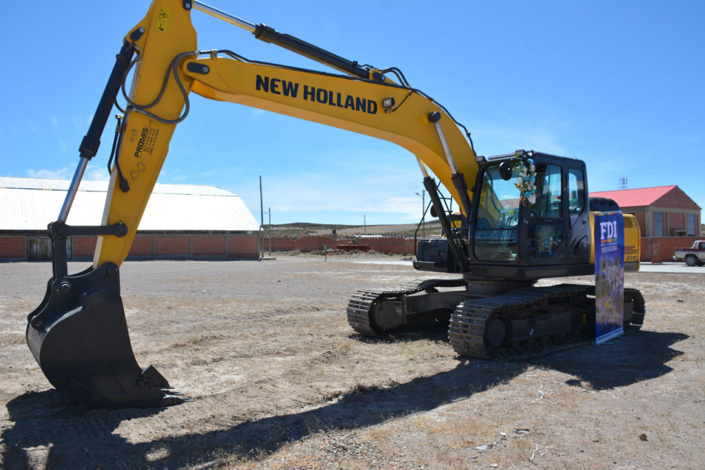 El presidente Lucho Arce Catacora a través del Ministerio de Desarrollo Rural y Tierras y de la directora general ejecutiva del Fondo de Desarrollo Indígena Lic. Delicia Rossio López Tolaba entregó este este fin de semana 1 excavadora hidráulica para la construcción de vigiñas y atajados en el marco del fortalecimiento al sector camelido en 8 comunidades del municipio de Coipasa del departamento de Oruro.