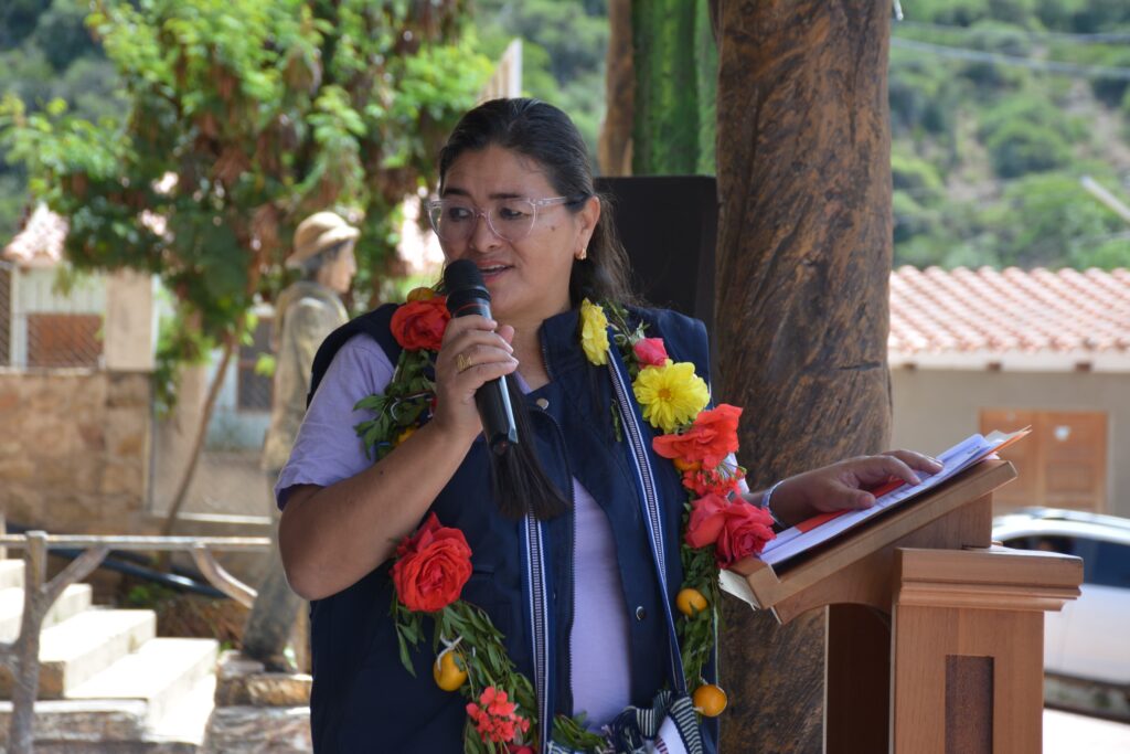 La directora general ejecutiva del Fondo de Desarrollo Indígena Lic. Delicia Rossio López Tolaba acompañado de autoridades departamentales, municipales, dirigentes de organizaciones sociales y beneficiarios entregó la maquinaria que tiene por objetivo de promover la producción ganadera bovina a través de atajados para la cosecha de agua de lluvia que se constituirán en reservorios de agua para consumo animal en época de estiaje, reduciendo la mortandad bovina, generando así mejores condiciones de vida para los productores ganaderos en comunidades beneficiarias del municipio de Pasorapa.