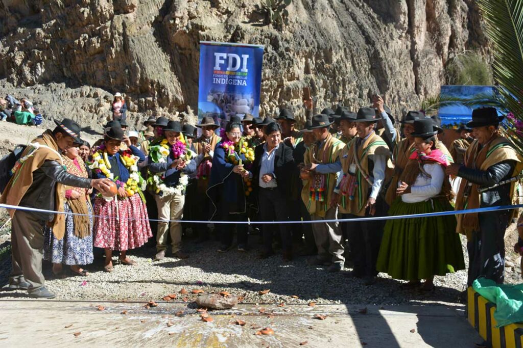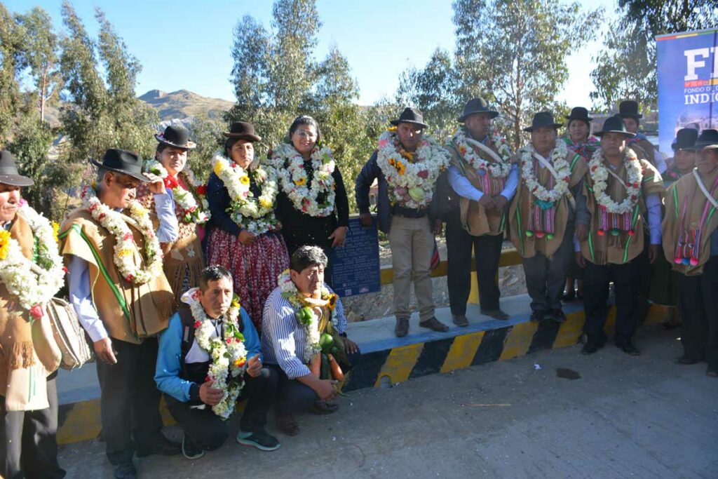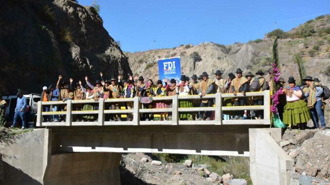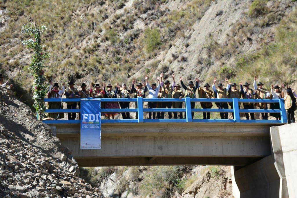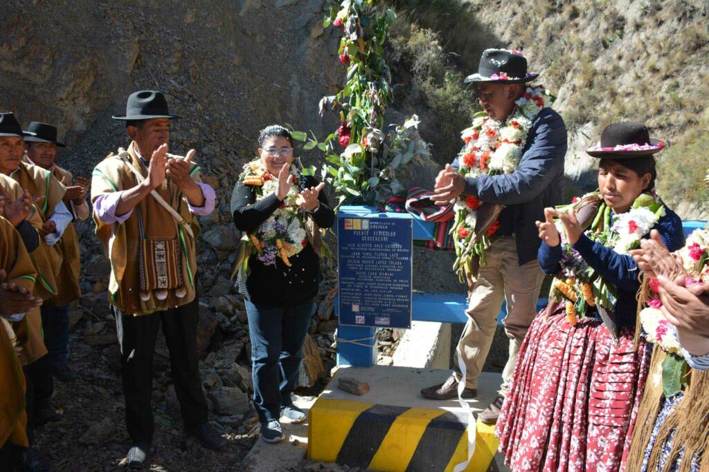 La directora General Ejecutiva del Fondo de Desarrollo Indígena Lic. Delicia Rossio López Tolaba a nombre del presidente Lucho Arce Catacora y del Ministerio de Desarrollo Rural y Tierras, entregó este domingo; el puente vehicular Pusquiri, puente vehicular Sehuencani y el puente vehicular Uni La Quebrada, en el municipio de Palca en del departamento del La Paz, con la presencia de autoridades municipales, juntas vecinales y beneficiarios.