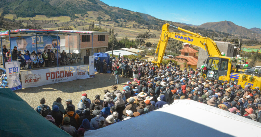 FDI, 17 de julio, 2024.- El Fondo de Desarrollo Indígena (FDI) se constituyó en el municipio de Pocona, en el departamento de Cochabamba, una región que destaca por su gran potencial agropecuario, especialmente en la producción de diferentes tipos de papa. Sin embargo, uno de los principales desafíos que enfrentan las comunidades de este municipio es el acceso al agua durante las épocas secas. Para abordar este problema, el FDI entregó maquinaria pesada que ayudará a resolver la escasez de agua en varias comunidades.