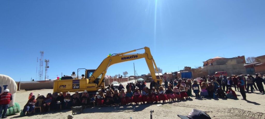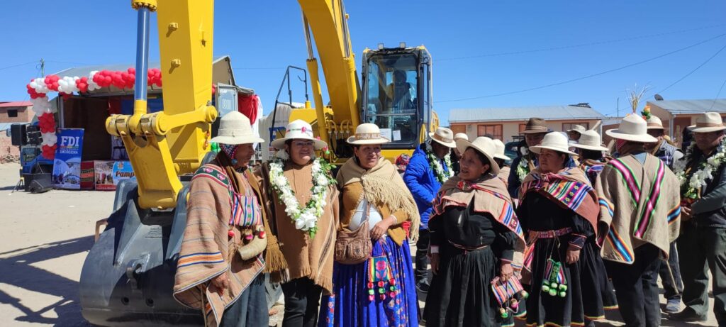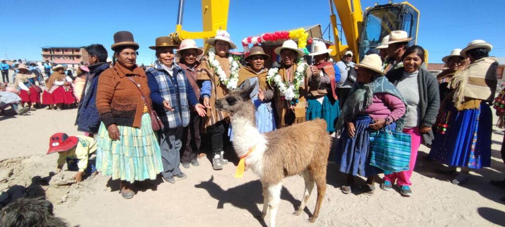 El acto central se llevó a cabo con la presencia de autoridades del municipio y beneficiarios quienes agradecieron al FDI por esta importante maquinaria que ayudará a mejorar el desarrollo pecuario en la región, a través de la construcción de 125 vigiñas con un volumen de almacenamiento de 485m3 de agua y así Incrementar el ganado camélido de 9.000 cabezas a 11.779 cabezas. Beneficiando así a 125 familias de 32 comunidades.