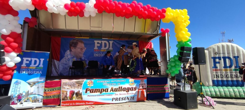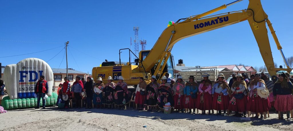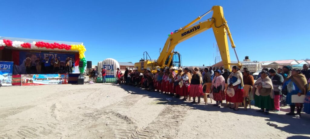 En este sentido el FDI financia el proyecto “Construcción de Vigiñas y Atajados con Maquinaria para la Cosecha de Agua Destinado al Ganado Camélido en el Municipio de Pampa Aullagas” con un monto de Bs1.500.000 y forma parte de la Cartera IV “Fortaleciendo el Desarrollo productivo”