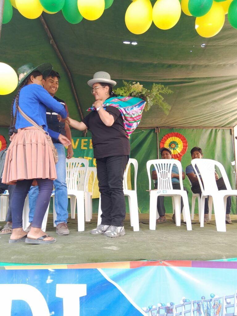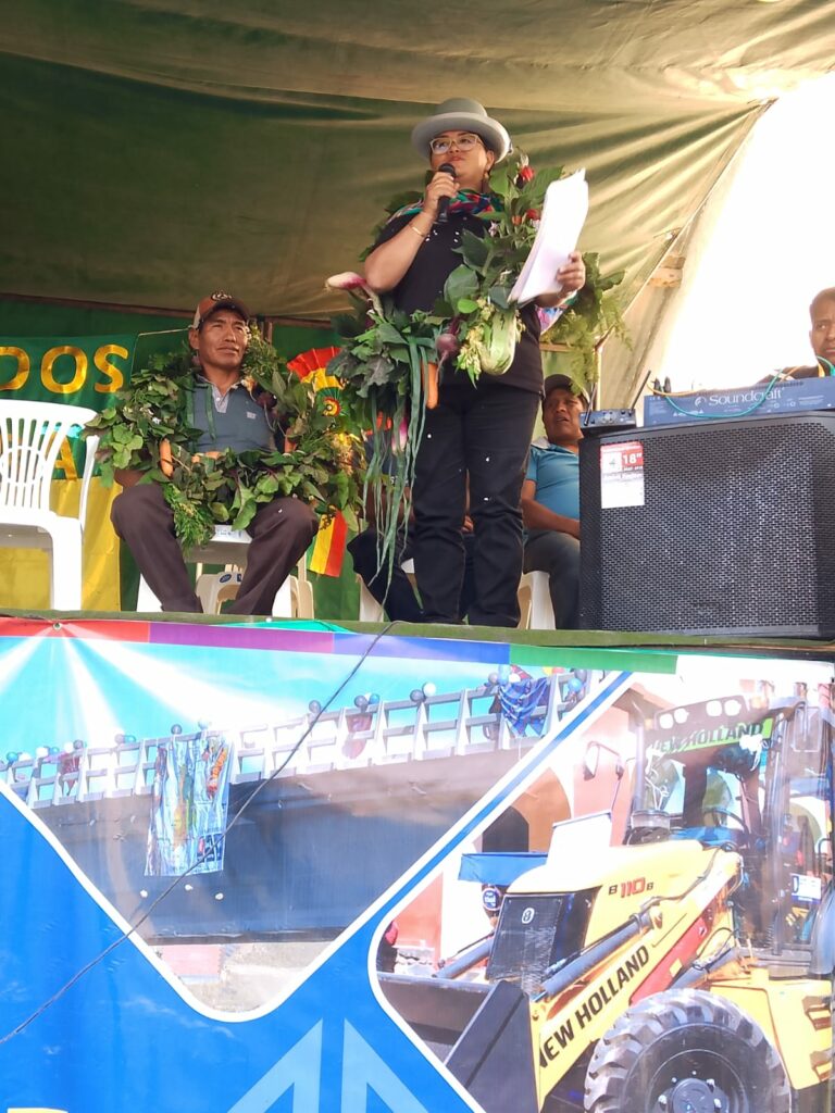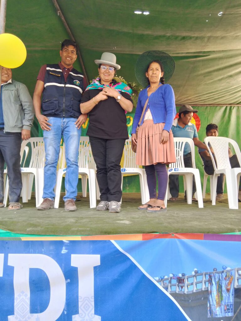 La Directora del FDI Lic. Rossio López en el acto principal felicitó al Alcalde por su acciones coordinadas y la unidad con la comunidad para hacer realidad este proyecto, además recordó que desde estas comunidades se hace realidad la seguridad y soberanía alimentaria sino que a su vez llega a todo el país.