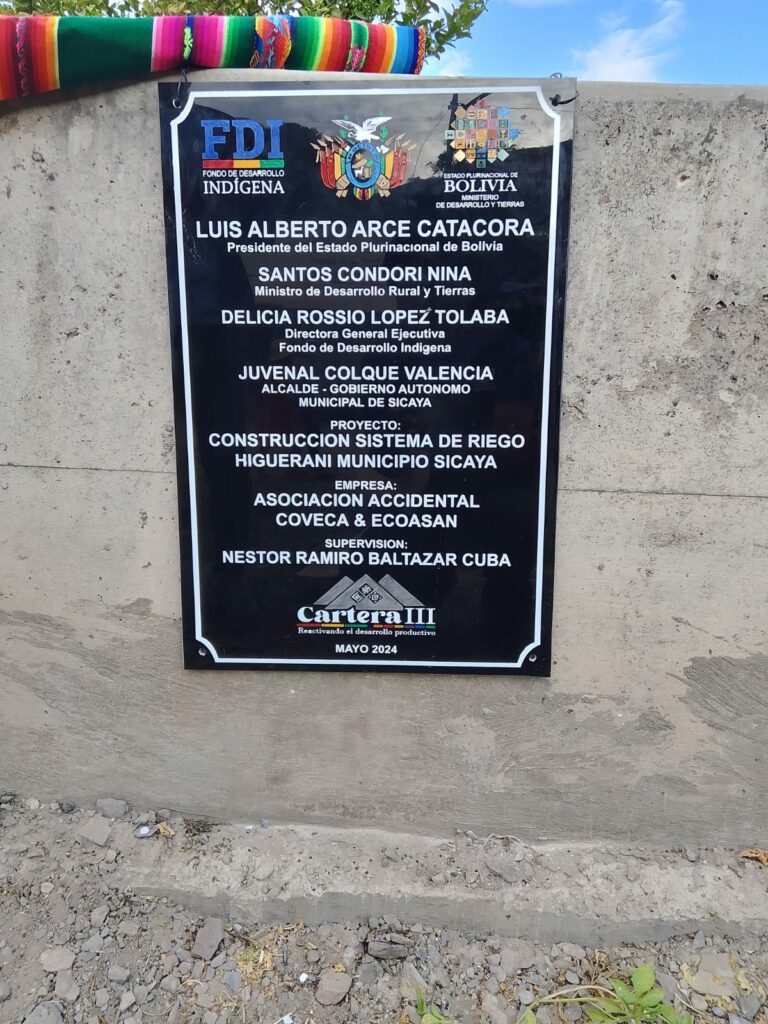 Con este sistema de Riego en la comunidad Huguerani se beneficiara a 85 familias productoras del municipio de Sicaya. Con una inversión del FDI de Bs1.319.137,58, una contraparte del GAM Bs82.319,06, haciendo un total de Bs1.401.456,64 El sistema permite a los agricultores cultivar durante todo el año, incluso en estaciones secas, lo que incrementa la producción y reduce la dependencia de las lluvias estacionales. Al mejorar la productividad agrícola y la disponibilidad de alimentos, y así contribuir a la seguridad alimentaria del municipio.